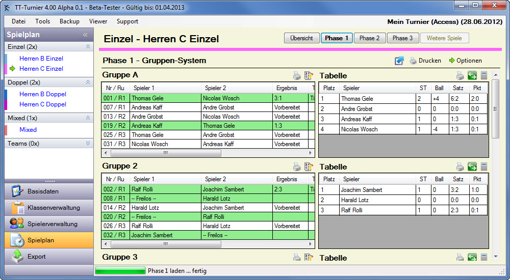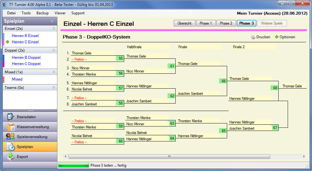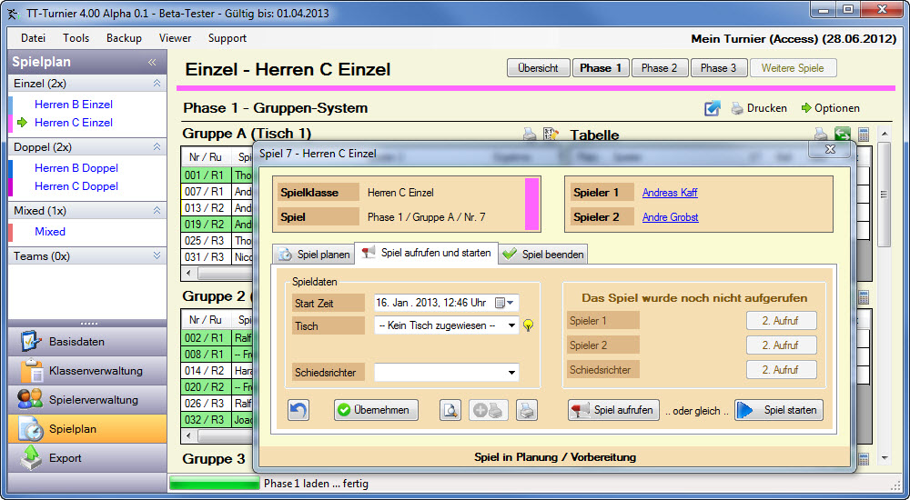 | - Flexible Planung von Spioelen im Vorfeld des Turnieres |