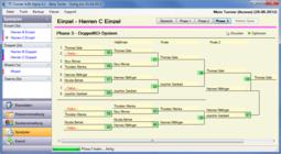5 verschiedene Spielsysteme (KO, Doppel-KO, Gruppen, Schweizer-System, 1-Runde) |